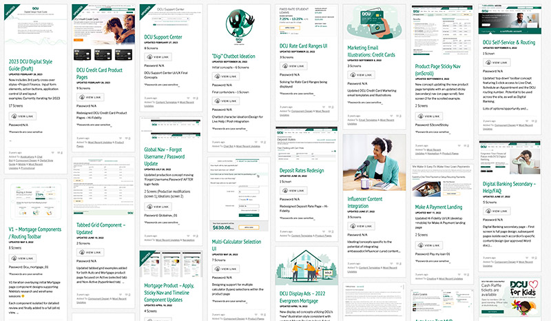 End-to-end design and front-end development for DCU’s member-facing digital products — from initial research and wireframing through polished, production-ready interfaces. Human Code created a DCU client portal with over 100 individual projects. Client portals are essential to avoiding internal team rework, design option libraries and speed to market prototyping of new, existing and previous UI/UX experiences.